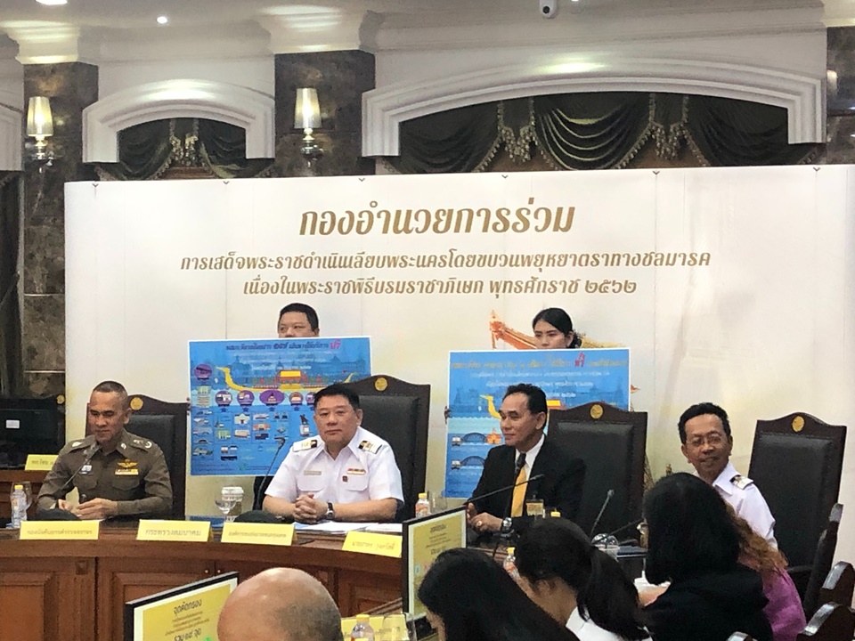 พล.ต.ต.จิรสันต์ แก้วแสงเอก รองผู้บัญชาการตำรวจนครบาล แถลงข่าว กองอำนวยการร่วมการเสด็จพระราชดำเนินเลียบพระนครโดยขบวนพยุหยาตราทางชลมารค เนื่องในพระราชพิธีบรมราชาภิเษก พุทธศักราช 2562 ว่า จากการประชุมร่วมกับหลายหน่วยงานทางการ กรมเจ้าท่า กรมการขนส่งทางบก ขสมก.การรถไฟแห่งประเทศไทย ในการอำนวยความสะดวกให้กับประชาชน ที่จะเดินทางมาร่วมฝ้าทูลละอองธุลีพระบาทรับเสด็จพระบาทสมเด็จพระเจ้าอยู่หัวในครั้งนี้ โดยสามารถเฝ้าทูลละอองธุลีพระบาทรับเสด็จได้ตั้งแต่บริเวณท่าวาสุกรี จนถึงท่าราชวรดิฐ และร่วมริ้วขบวนราบใหญ่ ที่จะเริ่มตั้งแต่ท่าราชวรดิฐไปจนถึงพระบรมมหาราชวัง ซึ่งมีระยะทาง 840 เมตร