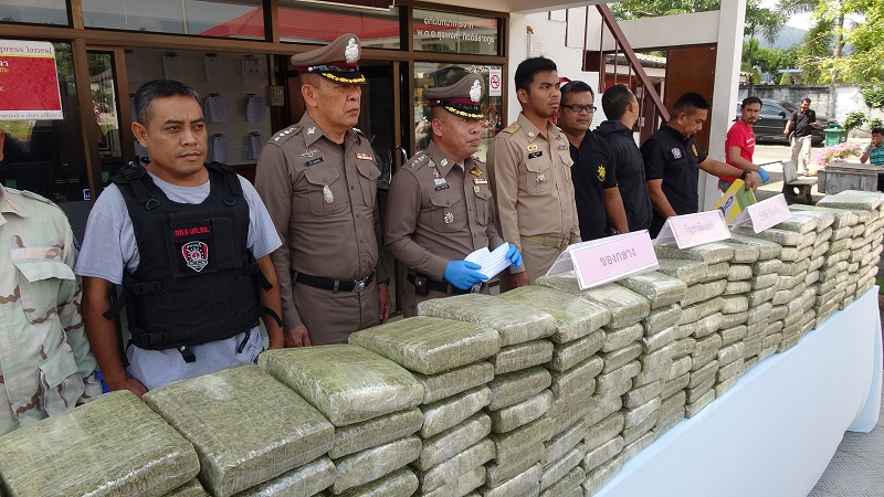 พ.ต.อ.เอนก ศรีคำอ้าย รองผู้บังคับการตำรวจภูธรจังหวัดสตูล แถลงที่ สภ.ควนโดน ผลการปราบปรามยาเสพติดจากการสนธิกำลัง ชปส.ภ.จว. ตำรวจ สภ.ควนโดน ตำรวจน้ำ ทหาร และฝ่ายปกครอง จับกุมนายรอสลัน แลหมัน อายุ 42 ปี และนายอับดุลลาเต็บ ดาแลหมัน อายุ 37 ปี พร้อมของกลางกัญชาอัดแท่งจำนวน 6 กระสอบ รวมน้ำหนัก 196 กิโลกรัม ซุกซ่อนอำพรางด้วยกองฟางไว้ในสวนมะพร้าวบ้านควนไสน หมู่ 9 ต.ควนสตอ อ.ควนโดน เจ้าหน้าที่แจ้งข้อหาดำเนินคดี “ร่วมกันมียาเสพติดให้โทษประเภท 5 (กัญชาแห้งอัดแท่ง) ไว้ในครอบครองเพื่อจำหน่ายโดยผิดกฎหมาย”