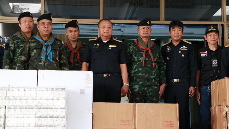 นราธิวาส 11 ธ.ค.- นราธิวาสยึดบุหรี่หนีภาษีชายแดนตากใบกว่า 20,000 ซอง จำนวนนับแสนมวน มูลค่า 5 ล้านบาท เตรียมนำเข้าสู่กระบวนการทำลายตามกฎหมาย