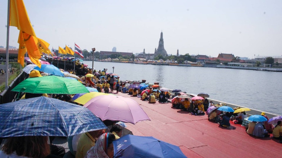 ภายหลังจากขบวนพยุหยาตราทางชลมารคมาเทียบยังท่าราชวรดิษฐแล้ว ในช่วงเวลาประมาณ 17.00 น. พระบาทสมเด็จพระเจ้าอยู่หัว จะประทับบนพระราชยานพุดตานทอง ไปยังพระที่นั่งอาภรณ์ภิโมกข์ ในพระบรมมหาราชวัง ผ่านถนนมหาราช เลี้ยวขวาเข้าสู่ถนนหน้าพระลาน เข้าสู่พระบรมมหาราชวัง เป็นระยะทาง 820 เมตร ใช้เวลาประมาณ 30 นาที ซึ่งจุดนี้ก็เนืองแน่นไปด้วยประชาชนเช่นกันที่ตั้งใจมาแสดงออกถึงความจงรักภักดีและร่วมในเหตุการณ์ครั้งประวัติศาสตร์นี้.-สำนักข่าวไทย