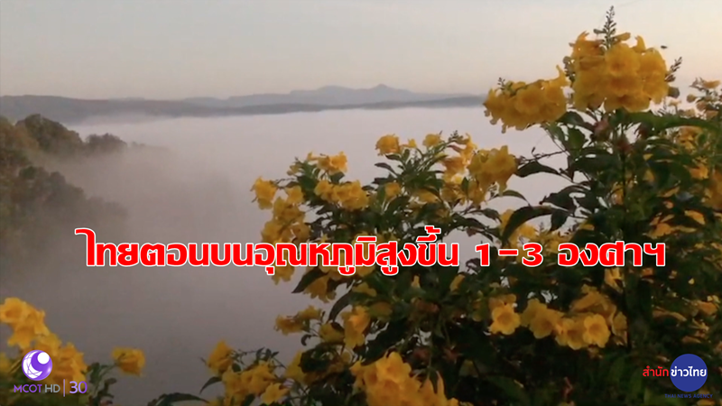 กรมอุตุนิยมวิทยา พยากรณ์อากาศ 24 ชั่วโมงข้างหน้า ประเทศไทยตอนบนอุณหภูมิจะสูงขึ้น 1-3 องศาเซลเซียส แต่ยังคงมีอากาศหนาวเย็นโดยทั่วไป ส่วนตอนกลางวันท้องฟ้าโปร่งและมีแดดจัด บริเวณพื้นราบในภาคเหนือและภาคตะวันออกเฉียงเหนือมีอากาศเย็นถึงหนาว อุณหภูมิต่ำสุด 9-17 องศาเซลเซียส ส่วนยอดดอยและยอดภูมีอากาศหนาวถึงหนาวจัดกับมีน้ำค้างแข็งบางพื้นที่ อุณหภูมิต่ำสุด 2-10 องศาเซลเซียส