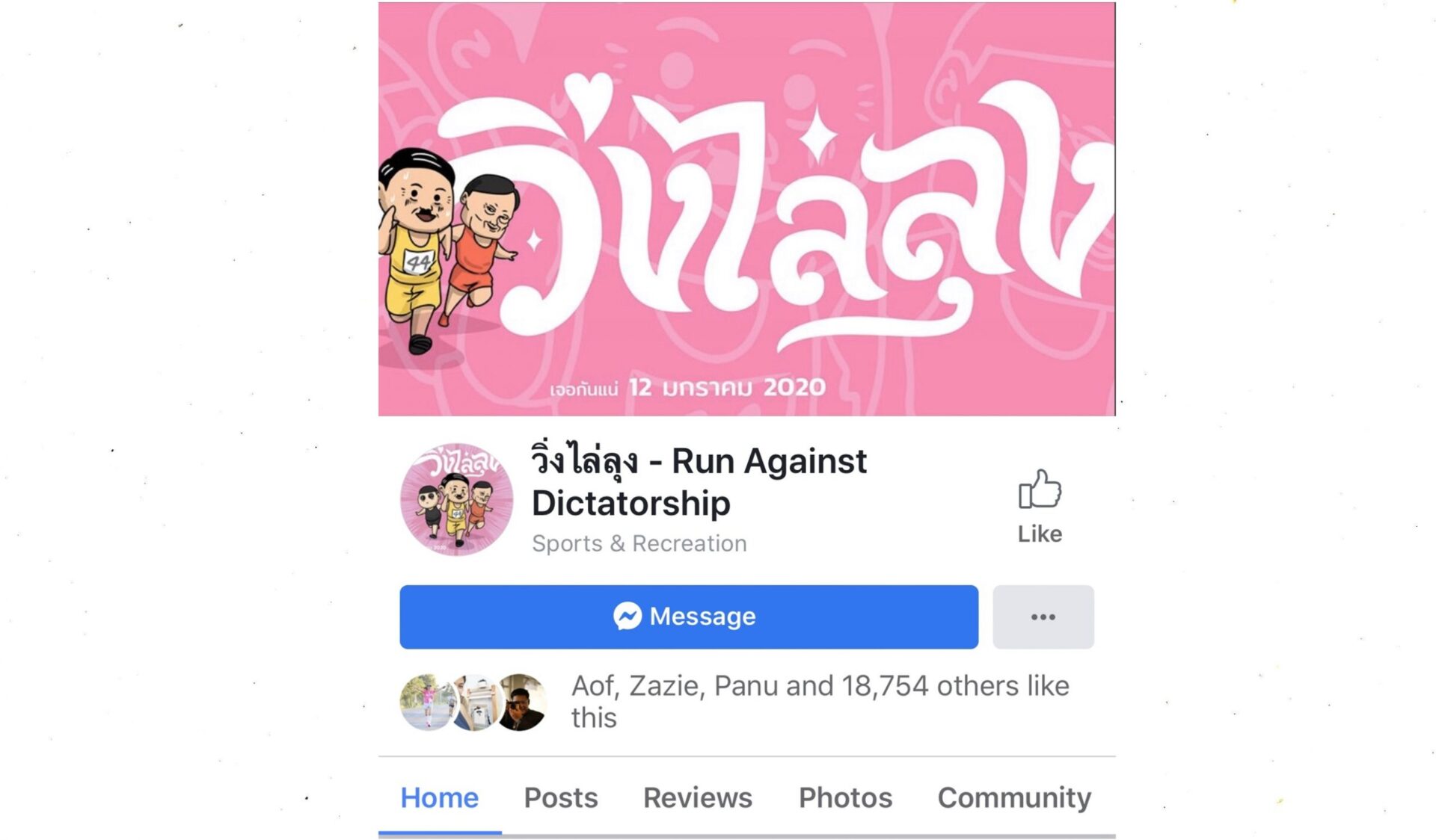 สำหรับกิจกรรมวิ่งไล่ลุง ทีมข่าวตรวจสอบไปในเพจเฟสบุค วิ่งไล่ลุง – Rum Against Dictatorship พบว่ามีผู้ติดตามเพจกว่า 18000 คน และมีการนัดหมายกันวันที่ 12 มค. 2563 โดยทางเพจเพิ่งเปลี่ยนโลโก้เป็นตัวการ์ตูนคุณลุง 2 คน และมีข้อความว่าเจอกันแน่ 12 มค. 2020 .-สำนักข่าวไทย