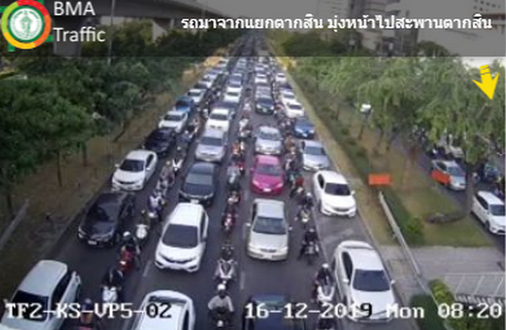 กทม. 16 ธ.ค.-สวพ.FM91 รายงานจราจรเช้าวันจันทร์ ถนนกรุงธนบุรี ขาเข้า มุ่งหน้าขึ้นสะพานตากสิน รถติดขัดมาก ส่วนถนนรัชดาภิเษก ขาเข้า มุ่งหน้าต่างระดับรัชวิภา รถเคลื่อนตัวได้ช้าๆ