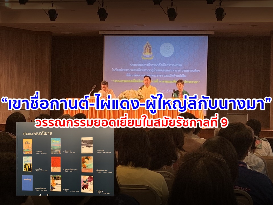 หอสมุดแห่งชาติ 18 ธค.-กระทรวงวัฒนธรรม เผยรายชื่อวรรณกรรมยอดเยี่ยมในสมัยรัชกาลที่ 9 “เขาชื่อกานต์-ไผ่แดง-ผู้หญิงคนนั้นชื่อบุญรอด-ผู้ใหญ่ลีกับนางมา” ประเภทนวนิยาย ขณะที่ “ขุนทองเจ้าจะกลับเมื่อฟ้าสาง-ฟ้าบ่กั้น-รวมเรื่องสั้น คึกฤทธิ์ปราโมช-สิ่งมีชีวิตที่เรียกว่าคน” ประเภทเรื่องสั้น พร้อมจัดพิมพ์เป็นหนังสือ “วรรณกรรมยอดเยี่ยมในสมัยรัชกาลที่ 9 ตามแนวคิดศาสตร์พระราชา” เผยแพร่วรรณกรรมอันทรงคุณค่าแห่งรัชสมัย