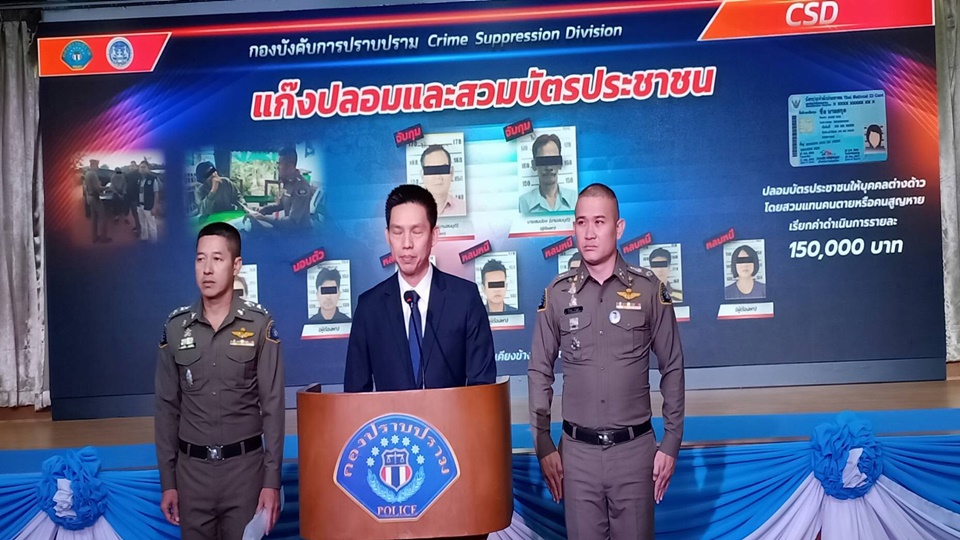 พลตำรวจตรีจิรภพ ภูริเดช ผู้บังคับการกองปราบปราม พร้อมด้วย พันตำรวจโท สิริพงษ์ ศรีตุลา ผู้อำนวยการกองปราบปรามการทุจริตในภาครัฐหรือ (ปปท.) แถลงข่าวจับกุมแก๊งปลอมและสวมบัตรประชาชน หลังตำรวจออกหมายจับจำนวน 9 คน สามารถจับกุมได้แล้ว 4 คน ส่วนอีก 5 คนอยู่ระหว่างการติดตาม
