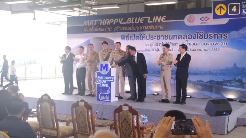 the opening of the trial run for the Blue Line extension, connecting Tha Phra station