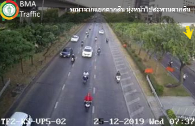 กทม. 25 ธ.ค.-สวพ.FM91 รายงานจราจรเช้าวันพุธ ถนนกรุงธนบุรี ข้ามสะพานสมเด็จพระเจ้าตากสิน รถน้อย คล่องตัว