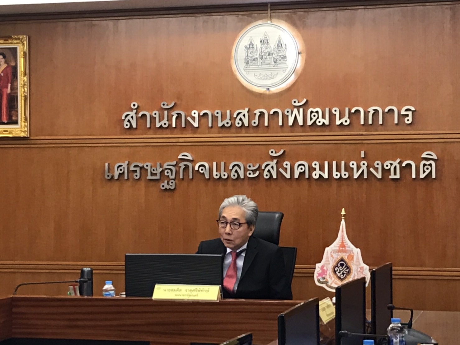 นายสมคิด จาตุศรีพิทักษ์ รองนายกรัฐมนตรี มอบนโยบายกับผู้บริหารสำนักงานสภาพัฒนาการเศรษฐกิจและสังคมแห่งชาติ
