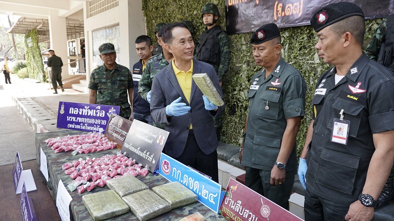 วันนี้ (25 ธ.ค.) ที่กองบังคับการควบคุมที่ 2 กองกำลังสุรศักดิ์มนตรี ที่ว่าการอำเภอเมืองหนองคายหลังเก่า นายณัฐวัสส์ วิริยานภาภรณ์ รองผู้ว่าราชการจังหวัดหนองคาย, พ.ต.อ.ภูวิศ ศิริพานิช ผกก.สภ.โพนพิสัย และ พ.อ.โฆสิตพงษ์ นิลเอก ผู้บังคับการกองบังคับการควบคุมที่ 2 แถลงผลบูรณาการปราบปรามยาเสพติดในช่วงวันที่ 22-23 ธ.ค.ที่ผ่านมา สามารถจับกุมผู้ต้องหา 1 คน ขณะนั่งเรือหางยาวจากฝั่งเพื่อนบ้านเข้ามาบริเวณเขื่อนป้องกันตลิ่งบ้านถิ่นดุง ต.วัดหลวง อ.โพนพิสัย เมื่อกลางดึกพร้อมกระสอบยาบ้าจำนวน 10 มัด ประมาณ 20,000 เม็ด กัญชาแห้งอัดแท่งอีก 5 กิโลกรัม นอกจากนี้ ยังตรวจค้นห้องพักของรีสอร์ทแห่งหนึ่ง ต.ชุมช้าง อ.โพนพิสัย หลังสืบทราบว่าขบวนการค้ายาเสพติดนำมาพักไว้ พบยาบ้า 10 มัด ประมาณ 20,000 เม็ด แต่ไม่มีใครแสดงตัวเป็นเจ้าของ รวมทั้งยึดยาบ้าได้อีก 20 มัด ใส่ไว้ในกระสอบจำนวน 40,000 เม็ด ซุกซ่อนอยู่ริมแม่น้ำโขง เขตบ้านเวิน ต.จุมพล อ.โพนพิสัย.-สำนักข่าวไทย
