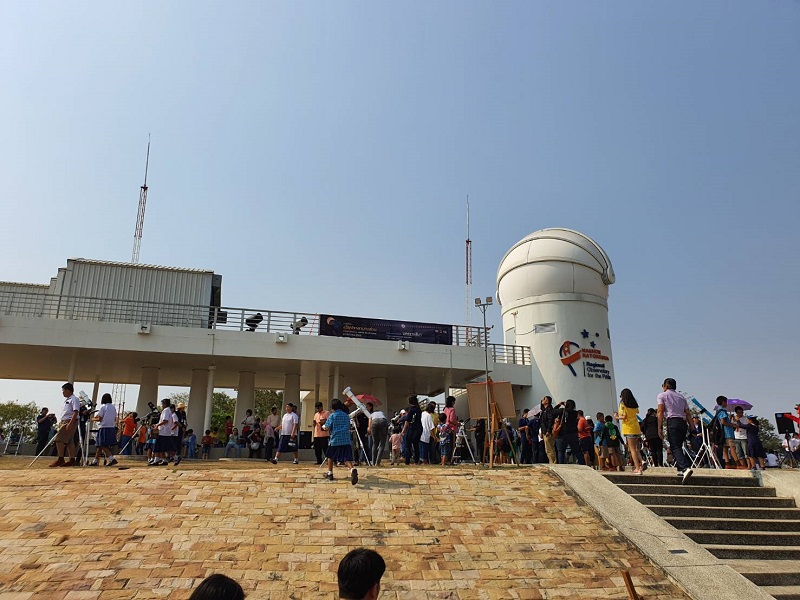 เมื่อเวลา 10.45 น. (26 ธ.ค.) ที่หอดูดาวเฉลิมพระเกียรติ 7 รอบ พระชนมพรรษา นครราชสีมา กระทรวงการอุดมศึกษา วิทยาศาสตร์ วิจัย และนวัตกรรม ภายในมหาวิทยาลัยเทคโนโลยีสุรนารี ได้จัดกิจกรรมชวนดู “สุริยุปราคาเหนือฟ้าเมืองไทย” ตั้งแต่เวลา 10.19-12.11น. โดยได้รับความสนใจจากนักเรียน ผู้ปกครองและประชาชนจำนวนมาก ซึ่งเจ้าหน้าที่หอดูดาวฯ ได้นำอุปกรณ์มาบริการให้ประชาชนได้ชมสุริยุปราคาบางส่วน มีทั้งแว่นตาดูดวงอาทิตย์ กล้องโทรทรรศน์สำหรับดูดวงอาทิตย์, กล้องโทรทรรศน์ติดแผ่นกรองแสงแบบกระจกเคลือบโลหะ หน้ากากซุปเปอร์ฮีโร่ต่าง ๆ ที่มีการนำฟิล์มกรองแสงมาติดบริเวณดวงตา และกล้องรูเข็มที่ทำจากกระบอกไม้ไผ่ สร้างความตื่นเต้นดีใจให้กับประชาชนเป็นอย่างมากที่ได้เห็นการเกิดปรากฏการณ์ครั้งนี้ แม้สภาพอากาศจะร้อนอบอ้าว บางรายยังเคาะไม้ไผ่ตามความเชื่อเพื่อขับไล่สิ่งไม่ดีออกไป
