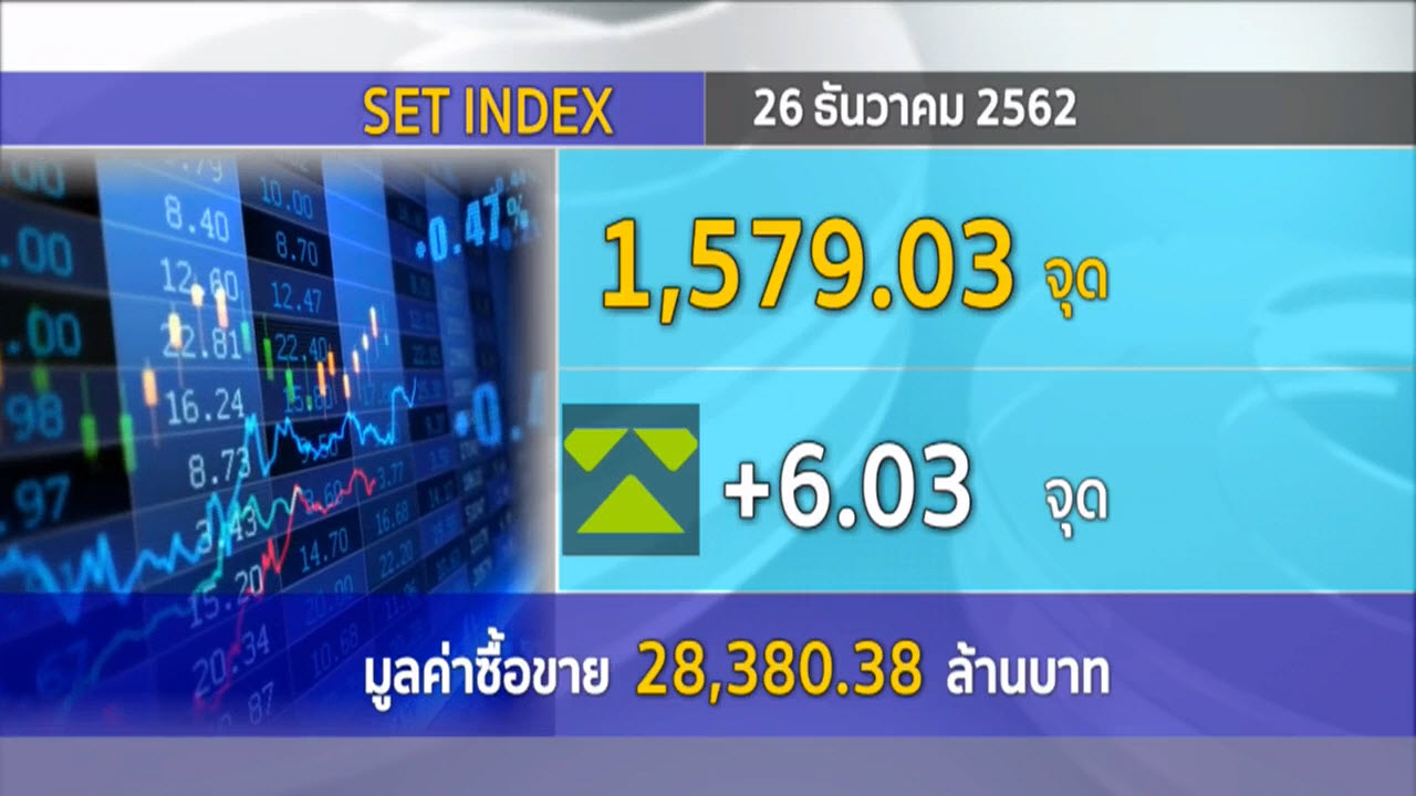 กรุงเทพฯ 26 ธ.ค. – ตลาดหลักทรัพย์ปิดวันนี้ที่ระดับ 1,579.03 จุด เพิ่มขึ้น 6.03 จุด (+0.38%) มูลค่าการซื้อขาย 28,380.38 ล้านบาท