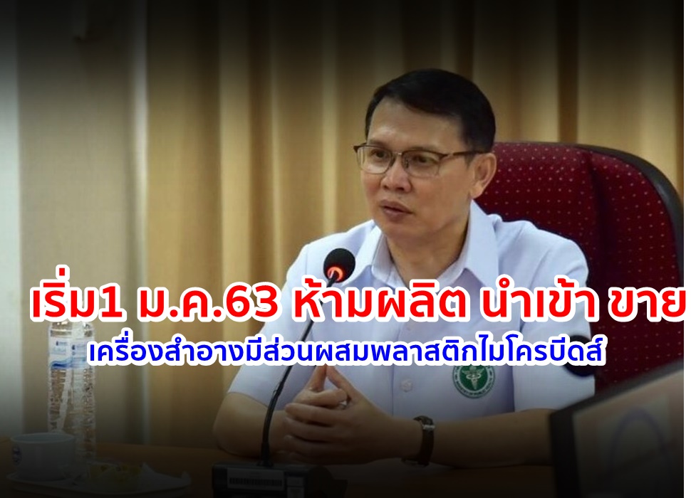 อย.27 ธ.ค.-1 ม.ค.63 ดีเดย์ทั่วไทยบังคับใช้กฎหมายห้ามผลิต นำเข้า หรือขาย เครื่องสำอางที่ใช้แล้วล้างออก ที่มีส่วนผสมของพลาสติกไมโครบีดส์ เพื่อรักษาสิ่งแวดล้อมและคุ้มครองสุขภาพของคนไทย