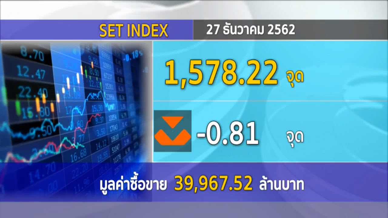 กรุงเทพฯ 27 ธ.ค. – ตลาดหลักทรัพย์ปิดวันนี้ที่ระดับ 1,578.22 จุด ลดลง 0.81 จุด (-0.05%) มูลค่าการซื้อขาย 39,967.52 ล้านบาท