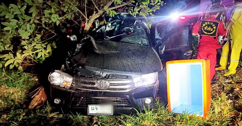 ประจวบคีรีขันธ์ 28 ธ.ค.- เกิดอุบัติเหตุเศร้า! กลางดึกสายบายพาสหัวหิน-ประจวบฯ รถกระบะชนต้นไม้อย่างแรง เสียชีวิต 2 ราย คาดคนขับหลับใน