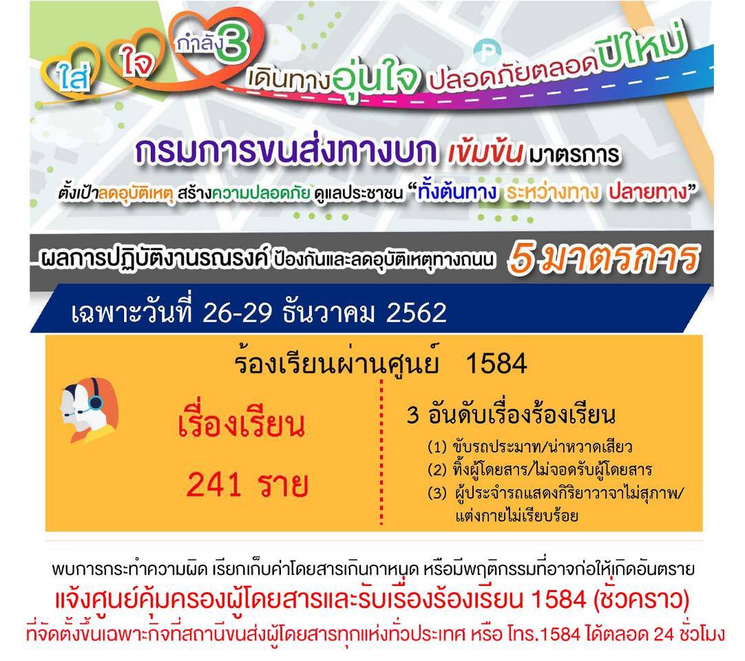 เปิดเผยถึงผลการปฏิบัติการของศูนย์คุ้มครองผู้โดยสารและรับเรื่องร้องเรียน1584