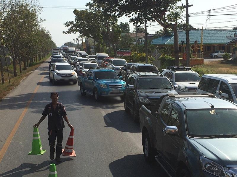 ประจวบคีรีขันธ์ 1 ม.ค.- เจ้าหน้าที่เร่งระบายการจราจรถนนเพชรเกษม รถสัญจรเข้ากรุงวันหยุดสุดท้ายเทศกาลปีใหม่ ติดขัดสี่แยกเมืองประจวบฯ คาดหนาแน่นตลอดคืนถึงรุ่งเช้า