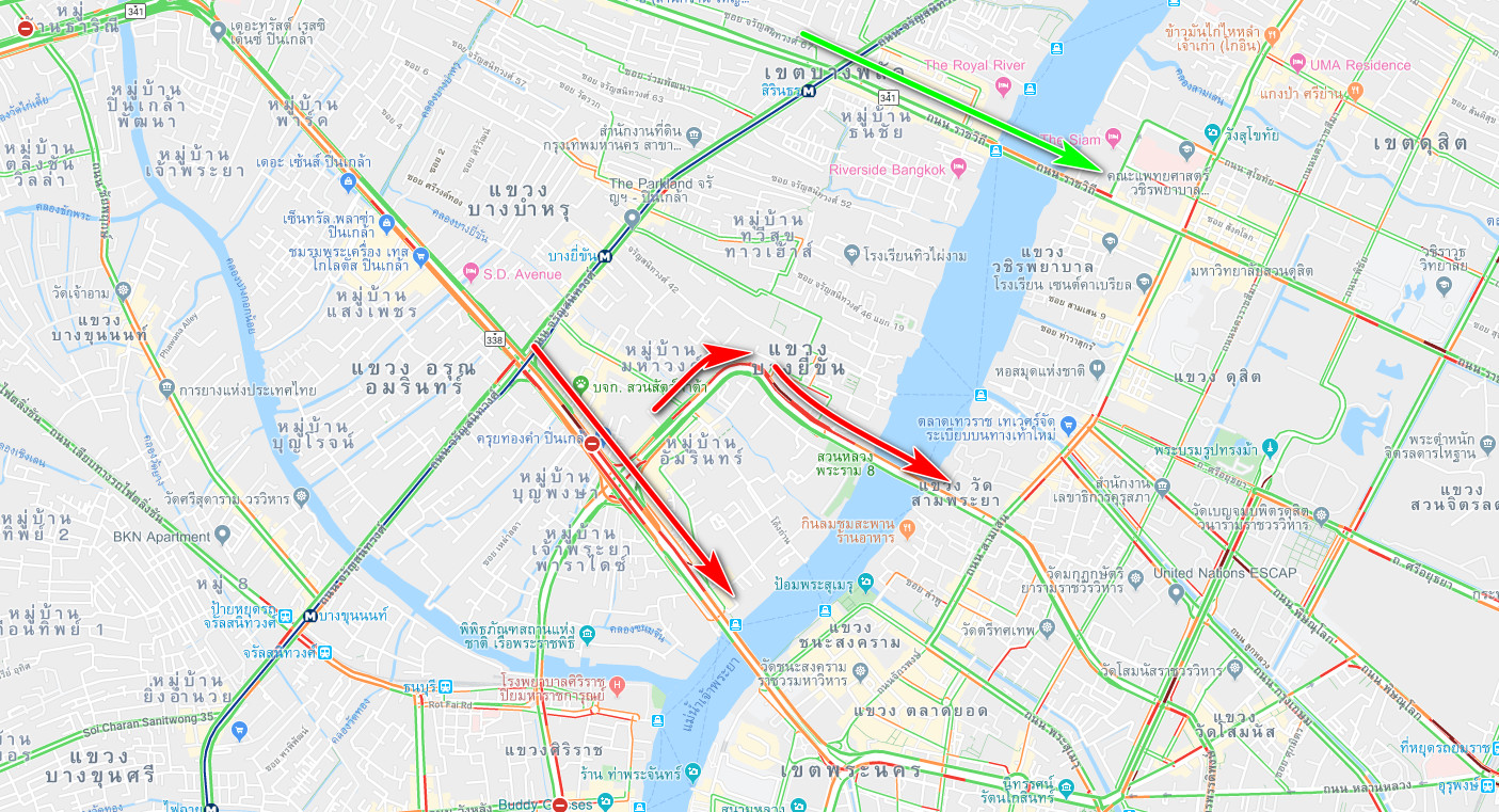 ถนนสิรินธร ข้ามสะพานกรุงธน การจราจรยังเคลื่อนตัวดี