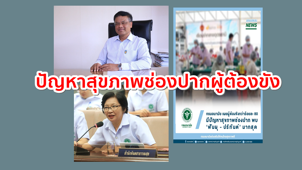 กรมอนามัย 2 ม.ค.-กรมอนามัยร่วมกับภาคีเครือข่าย ขับเคลื่อนโครงการจัดบริการสุขภาพช่องปากผู้ต้องขัง หลังพบมีปัญหาสุขภาพช่องปาก โดยเฉพาะฟันผุกับปริทันต์ในระดับสูง