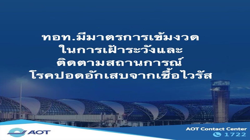 นายนิตินัย กล่าวว่า ในส่วนของ ทหญ.และ ทชร.ซึ่งไม่มีเที่ยวบินที่ทำการบินจากเมืองอู่ฮั่น ก็ได้เฝ้าระวังและติดตามสถานการณ์อย่างใกล้ชิด พร้อมประสานด่านควบคุมโรคฯ รวมทั้งได้กำหนดมาตรการ เพื่อเตรียมพร้อมรับมือกับสถานการณ์ต่าง ๆ ในอนาคต อย่างไรก็ตาม ทอท.ขอความร่วมมือผู้โดยสารและผู้ใช้บริการท่าอากาศยาน ปฏิบัติตามคำแนะนำของกรมควบคุมโรค กระทรวงสาธารณสุข ได้แก่ หลีกเลี่ยงการอยู่ในสถานที่แออัด หรือสถานที่ที่มีมลภาวะที่เป็นพิษ ไม่ใช้ของส่วนตัวร่วมกับผู้อื่น เช่น ผ้าเช็ดหน้า แก้วน้ำ ผ้าเช็ดตัว รวมถึงการรักษาร่างกายให้อบอุ่นอยู่เสมอ นอกจากนี้ สำหรับคนที่เดินทางมาจากพื้นที่เสี่ยง โดยเฉพาะเด็กเล็กและผู้สูงอายุ หากเริ่มมีอาการป่วย เช่น มีไข้ ไอ เจ็บคอ มีน้ำมูก ขอให้รีบไปพบแพทย์หรือเจ้าหน้าที่สาธารณสุขทันที เนื่องจากมีโอกาสเกิดภาวะแทรกซ้อนปอดบวมได้ ซึ่งสามารถสอบถามข้อมูลเพิ่มเติมได้ที่สายด่วนกรมควบคุมโรค โทร. 1422 และผู้โดยสารสามารถสอบถามเกี่ยวกับเที่ยวบินและการให้บริการของ ทอท.ได้ที่ AOT Call Center 1722 ตลอด 24 ชั่วโมง.-สำนักข่าวไทย