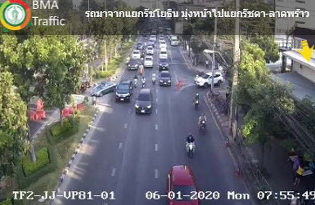 กทม. 6 ม.ค.-สวพ.FM91 รายงานจราจรเช้าวันจันทร์ ถนนรัชดาภิเษก ขาเข้า จากแยกรัชโยธิน มุ่งหน้าแยกรัชดา-ลาดพร้าว รถมาก