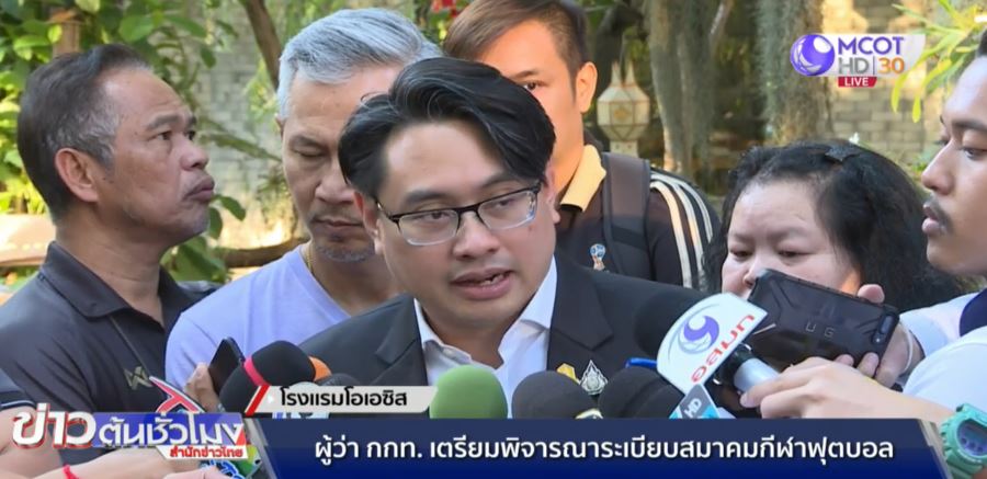 โรงแรมโอเอซิส 7 ม.ค.-ผู้ว่าการ กกท. เตรียมพิจารณาระเบียบของสมาคมกีฬาฟุตบอลฯ โดยสมาคมกีฬาฟุตบอลฯ มีสิทธิแก้ไขระเบียบข้อบังคับได้ แต่ต้องอยู่ภายใต้กฎหมายและมีความเป็นธรรมด้วย