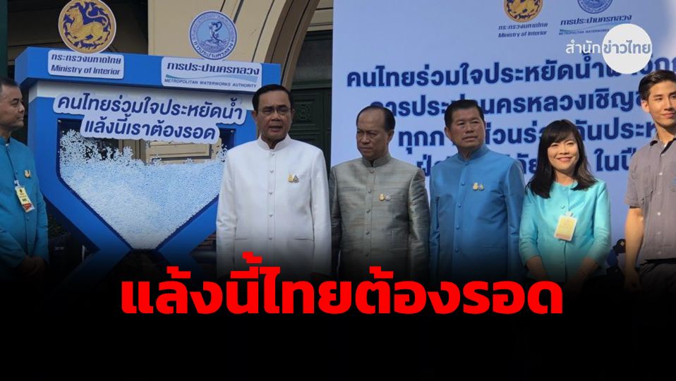 ทำเนียบ 7 ธ.ค.- นายกรัฐมนตรี ขอให้ทุกคนช่วยกันประหยัดน้ำในช่วงวิกฤติภัยแล้ง ประหยัดน้ำคนละ 1 นาทีต่อวัน ต่อคน ประหยัดได้ถึง 9 ลิตร คนกรุง 10 ล้านคน ประหยัดน้ำได้ถึง 100 ล้านลิตร หากช่วยกันได้ แล้งนี้ไทยต้องรอด