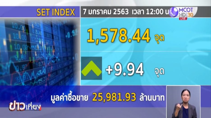 ตลาดหุ้นไทยช่วงเที่ยงปรับขึ้นได้ตามตลาดต่างประเทศ ปิด +9.94 จุด