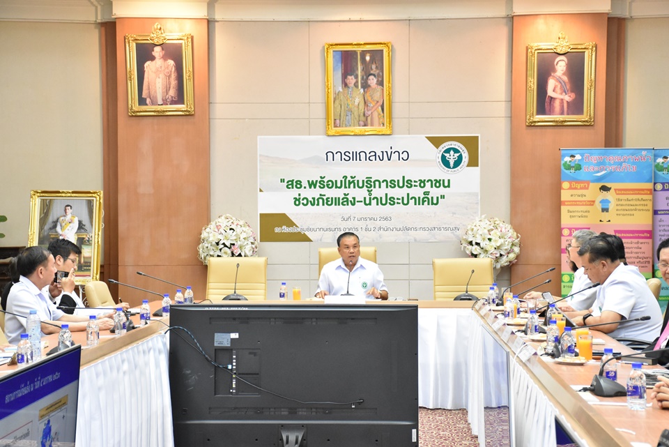 วันนี้ (7ม.ค.)ที่สำนักงานปลัดกระทรวงธารณสุข จ.นนทบุรี นายสาธิต ปิตุเตชะ รัฐมนตรีช่วยว่าการกระทรวงสาธารณสุข (รมช.สธ.) มอบหมายให้นายเรวัต อารีรอบ ผู้ช่วยเลขานุการรัฐมนตรีว่าการกระทรวงสาธารณสุขเป็นประธานแถลงข่าว “สธ.พร้อมให้บริการประชาชนช่วงภัยแล้งและน้ำประปาเค็ม” โดยมี พญ.พรรณพิมล วิปุลากร อธิบดีกรมอนามัย นายแพทย์โอภาส การย์กวินพงศ์ อธิบดีกรมวิทยาศาสตร์การแพทย์ ร่วมแถลง