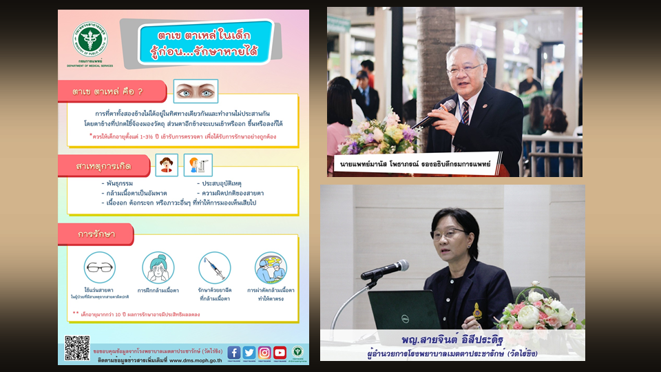 กรมการแพทย์ 9 ม.ค.-รพ.เมตตาประชารักษ์ (วัดไร่ขิง) เตือนอาหารเสริม วิตามิน ที่อวดอ้างว่าทำให้สุขภาพตาและการมองเห็นดีขึ้น เห็นชัด หายจากโรคตาที่เป็นอยู่ ไม่มีจริง อย่าหลงเชื่อ แนะดูแลสุขภาพตาหากมีอาการผิดปกติ ควรพบจักษุแพทย์