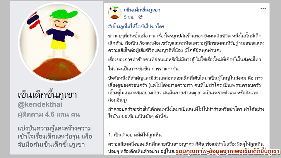 โดยระบุว่า ข่าวแย่ๆ ที่เกิดขึ้นเมื่อวาน เรื่องโจรบุกปล้นร้านทองยิงคนเสียชีวิต หนึ่งในนั้นมีเด็กเล็กด้วย ถือเป็นเรื่องสะเทือนขวัญและสะเทือนความรู้สึกของคนที่รับรู้ หมอขอแสดงความเสียใจต่อผู้เสียชีวิตและญาติพี่น้อง ผู้ใกล้ชิดทุกท่าน เรื่องการทำร้ายคนที่อ่อนแอหรือไม่มีทางสู้ไม่ใช่เรื่องใหม่ที่เกิดขึ้นในสังคมไทย ไม่ว่าจะเป็นการข่มขืน การฆ่าแกง ปัจจัยหนึ่งที่สำคัญและมีส่วนหล่อหลอมเด็กที่เติบโตมาเป็นผู้ใหญ่ในสังคม คือการเลี้ยงดูของครอบครัว (แต่ไม่ได้หมายความว่า คนที่ไปฆ่าใคร เป็นเพราะครอบครัวเลี้ยงดูไม่เหมาะสมอย่างเดียว มีหลายสาเหตุ อาจเป็นเพราะตัวเอง หรือสิ่งแวดล้อมอื่นๆ) ถ้าครอบครัวจะช่วยให้เด็กคนหนึ่งโตมาเป็นคนที่ไม่ไปทำร้ายหรือฆ่าใคร ทำได้อย่างไรบ้าง ขอเขียนเป็นข้อๆ ดังนี้