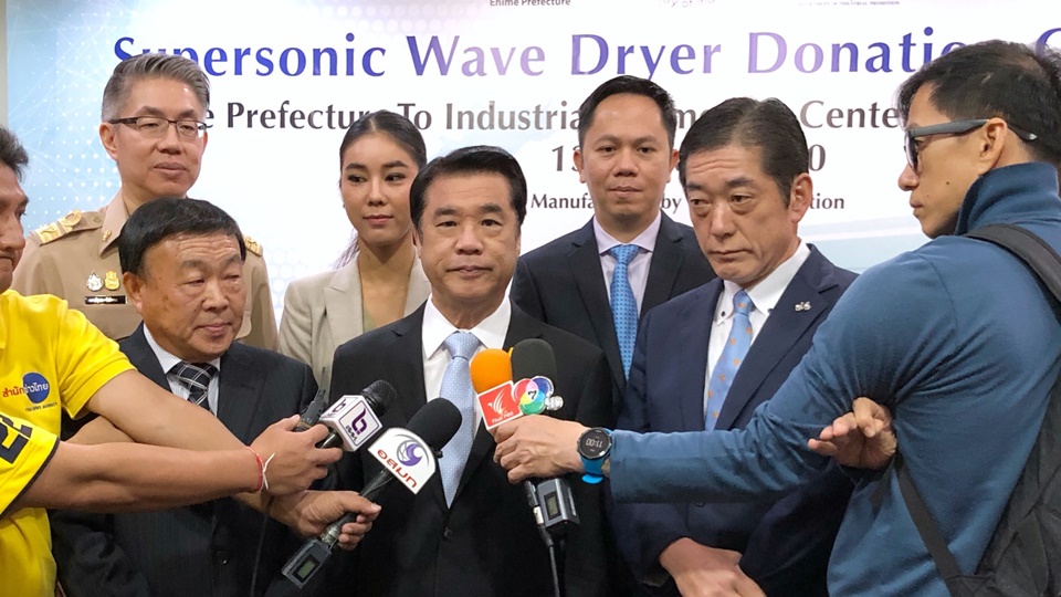 กระทรวงอุตสาหกรรม โดยกรมส่งเสริมอุตสาหกรรม (กสอ.) รับมอบเครื่อง Super Sonic Wave Dryer เครื่องอบแห้งอาหารเทคโนโลยีใหม่ จากจังหวัดเอฮิเมะ เพื่อนำมาต่อยอดนวัตกรรมแปรรูปผลิตภัณฑ์ทางการเกษตรให้กับเอสเอ็มอีไทย โอกาสนี้นายสุริยะ จึงรุ่งเรืองกิจ รัฐมนตรีว่าการกระทรวงอุตสาหกรรม เปิดเผยว่า ในช่วงปี 2562 นักลงทุนจากประเทศญี่ปุ่นเข้ามาลงทุนในประเทศไทยอย่างต่อเนื่องและยังคงเป็นประเทศที่เข้ามาลงทุนในไทยมากเป็นอันดับ 1 โดยเดือนมกราคม-กันยายน 2562 นักลงทุนญี่ปุ่นได้รับการอนุมัติการลงทุนโดยตรง (FDI) คิดเป็นมูลค่ากว่า 62,000 ล้านบาท หรือคิดเป็นร้อยละ 27 ของมูลค่าการลงทุนจากต่างประเทศทั้งหมด ปัจจุบันมีนักลงทุนญี่ปุ่นเข้ามาลงทุนสะสมกว่า 6,000 กิจการ ในช่วงสงครามการค้า นับเป็นโอกาสที่นักลงทุนญี่ปุ่นสามารถเข้ามาใช้ไทยเป็นแหล่งลงทุนได้ จึงขอเชิญชวนนักลงทุนญี่ปุ่นเข้ามาลงทุนในไทยเพื่อช่วยพัฒนาอุตสาหกรรมร่วมกันต่อไป