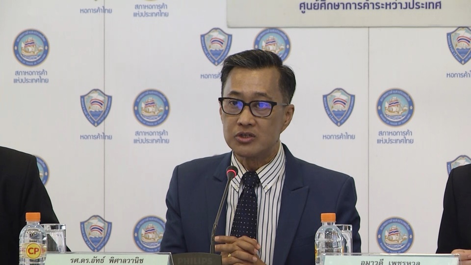 นายอัทธ์ พิศาลวานิช ผู้อำนวยการศูนย์การค้าระหว่างประเทศ มหาวิทยาลัยหอการค้าไทย ได้ทำการวิเคราะห์ทิศทางการส่งออกไทยปี 2563 โดยคาดว่าปี 2563 ไทยมีมูลค่าการส่งออก 244,231 ล้านดอลลาร์สหรัฐ หรืออยู่ในช่วง 240,472 – 247,621 ล้านดอลลาร์สหรัฐ หดตัว 0.9% (อยู่ในช่วง -0.9-2.4%) โดยมีปัจจัยเสี่ยงสำคัญจากความขัดแย้งระหว่างสหรัฐกับอิหร่าน สงครามการค้าระหว่างสหรัฐกับจีนที่ยังต้องติดตามสถานการณ์ แม้ว่าจะมีการเซ็นสัญญาระหว่างสหรัฐกับจีนวันพรุ่งนี้ (15 ม.ค.) ที่กรุงวอชิงตัน ดีซี และเงินบาทที่แข็งค่าสุดในรอบ 6 ปี โดยค่าเงินบาทแข็งค่าขึ้น 1% มูลค่าส่งออกจะลดลง 0.11% ซึ่งค่าเงินบาทที่แข็งค่า 30 บาทต่อ 1 ดอลลาร์สหรัฐ มูลค่าการส่งออกลดลง 0.4% หรือลดลงประมาณ 29,381.4 ล้านบาท
