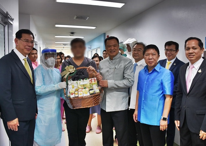 Mr Anutin together with Dr Sukum Kanchanapimai, permanent secretary for health, and Dr Suwannachai Wattanayingcharoenchai, director-general of the Department of Disease Control, went to the airborne infection isolation room where the woman was treated at Bamrasnaradura Infectious Diseases Institute.