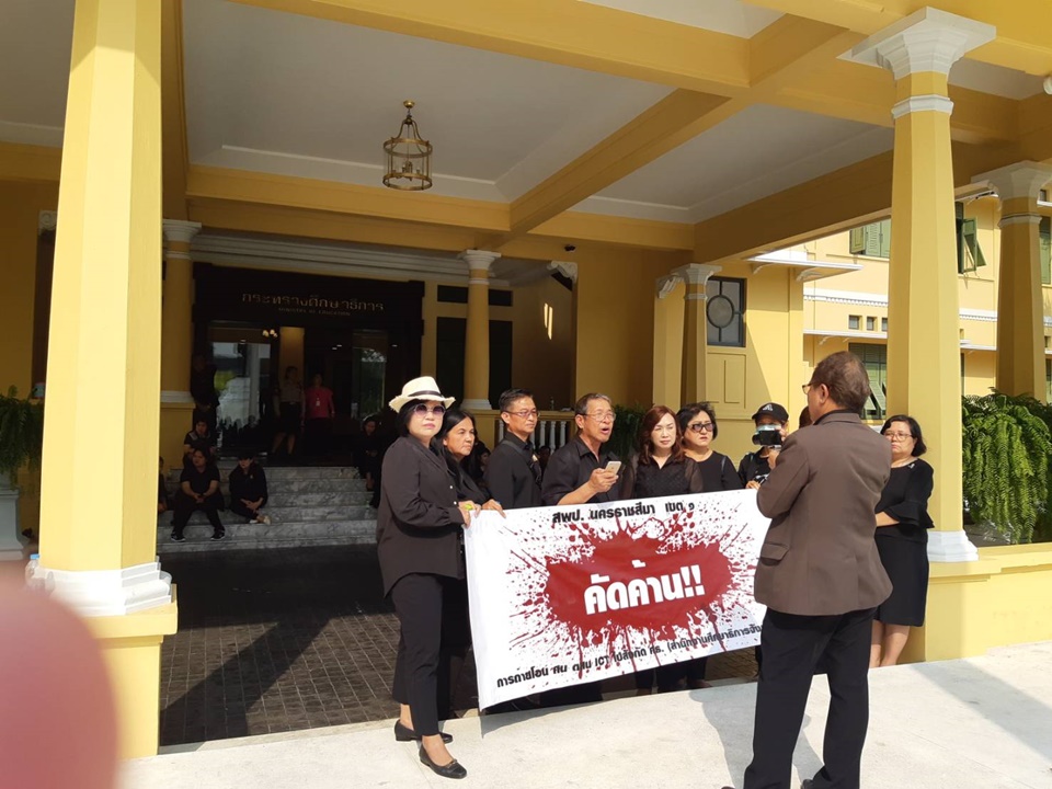 ศธ.15ม.ค.-กลุ่มศึกษานิเทศก์แต่งดำค้านการยุบควบรวมโครงสร้างบริหาร หวั่นกระทบคุณภาพการศึกษา เตรียมยื่นหนังสือเรียกร้องต่อนายกฯพรุ่งนี้ ในงานวันครูแห่งชาติ ที่คุรุสภา