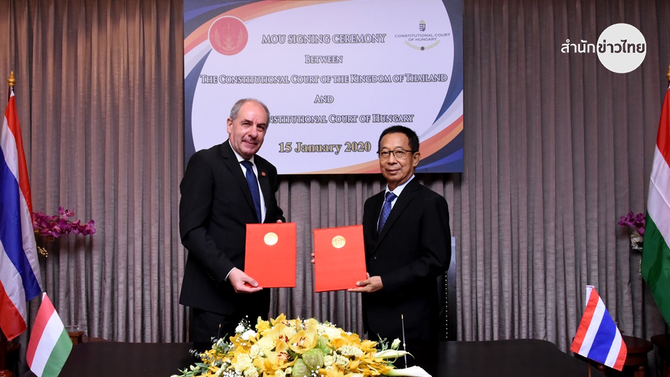 ศาลรัฐธรรมนูญ 15 ม.ค.-ศาลรัฐธรรมนูญไทยลงนามบันทึกความเข้าใจว่าด้วยความร่วมมือระดับทวิภาคีกับศาลรัฐธรรมนูญฮังการี ในด้านการปฏิบัติงาน การแลกเปลี่ยนความรู้และประสบการณ์ ตลอดจนการเพิ่มศักยภาพของทั้งสองหน่วยงาน