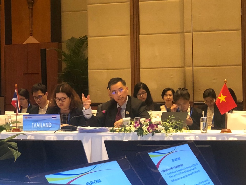 นอกจากนี้ ได้ติดตามการดำเนินการสำคัญของ 23 องค์กรรายสาขา การทำแนวทางการทบทวนความตกลงการค้าสินค้าอาเซียน (ATIGA) เพื่อรองรับรูปแบบการค้าปัจจุบันและลดอุปสรรคทางการค้าระหว่างกันมากขึ้น การผลักดันให้ใช้ระบบรับรองถิ่นกำเนิดสินค้าด้วยตัวเองโดยเร็ว เพื่อลดขั้นตอนและค่าใช้จ่ายในการค้าระหว่างกัน การเร่งรัดการเจรจาข้อตกลงยอมรับร่วมในสาขาก่อสร้างและวัสดุก่อสร้าง รวมทั้งเร่งรัดข้อตกลงยอมรับร่วมในสาขาอุตสาหกรรมรถยนต์ของอาเซียนที่เจรจาเสร็จนานแล้วให้มีการลงนามและมีผลบังคับใช้โดยเร็ว เพื่อลดขั้นตอนการตรวจสอบมาตรฐานซ้ำซ้อน การขอเข้าเป็นสมาชิกอาเซียนของประเทศติมอร์-เลสเต