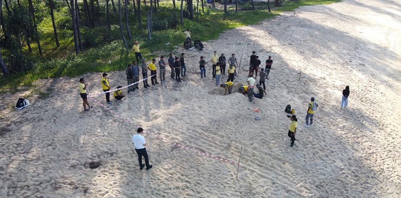 “รังนี้แม่เต่าขึ้นมาวางไข่ในเขตอุทยานอยู่แล้ว จึงไม่จำเป็นต้องย้าย ประกอบกับวางไข่มาแล้วไม่น้อยกว่า 2 วัน การย้ายจะทำให้ไข่เต่าไม่ปลอดภัยได้”.-สำนักข่าวไทย