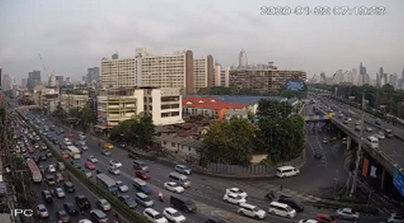 ถนนวิภาวดี-รังสิต ขาเข้า ผ่านหน้าสนามบินดอนเมือง รถเคลื่อนตัวได้ช้า ท้ายแถวชะลอตัวอยู่ที่ต่างระดับอนุสรณ์สถาน