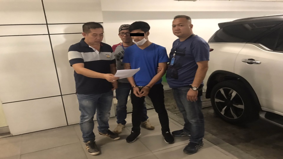 นายนิวัฒน์ หรือเปา (สงวนนามสกุล) อายุ 27 ปี ถูกตำรวจกองปราบจับกุมตามหมายจับศาลจังหวัดพัทยา ข้อหา“ร่วมกันข่มขืนใจผู้อื่นให้กระทำการใด ไม่กระทำการใด หรือจำยอมต่อสิ่งใด โดยทำให้กลัวว่าจะเกิดอันตรายต่อชีวิต ร่างกาย เสรีภาพของผู้ถูกข่มขืนใจนั้นเอง โดยใช้กำลังประทุษร้ายจนผู้ถูกข่มขืนใจต้องกระทำการนั้นไม่กระทำการนั้นหรือจำยอมต่อสิ่งนั้น โดยมีอาวุธ, หน่วงเหนี่ยวหรือกักขังผู้อื่น หรือกระทำด้วยประการใดให้ผู้อื่นปราศจากเสรีภาพในร่างกาย, ร่วมกันทำร้ายร่างกายผู้อื่นจนเป็นเหตุให้ได้รับอันตรายแก่กายหรือจิตใจ เพื่อให้ได้มาซึ่งค่าไถ่, ร่วมกันเอาตัวบุคคลอายุกว่าสิบห้าปีไป โดยใช้กลอุบายหลอกลวง ขู่เข็ญ ใช้กำลังประทุษร้าย ใช้อำนาจครอบงำผิดคลองธรรม หรือใช้วิธีข่มขืนใจด้วยประการอื่นใด หรือหน่วงเหนี่ยวหรือกักขัง โดยจับกุมได้หน้าห้างสรรพสินค้า อ.บางละมุง จว.ชลบุรี