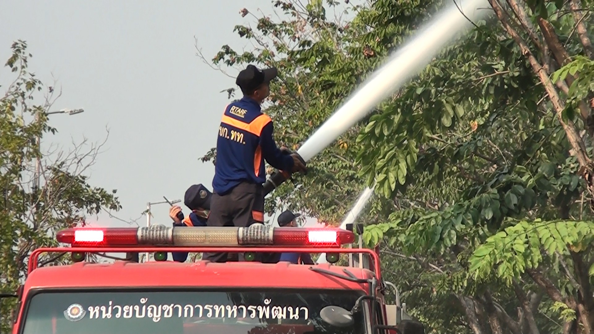 ซึ่งศูนย์บรรเทาสาธารณภัย สำนักงานสนับสนุน หน่วยบัญชาการทหารพัฒนา ได้ส่งกำลังพลพร้อมยานพาหนะและยุทโธปกรณ์บรรเทาสาธารณภัย เพื่อฉีดพ่นละอองน้ำเพิ่มความชุ่มชื่นในอากาศลดปัญหาฝุ่นละออง PM 2.5 เกินมาตรฐาน ในเขตพื้นที่จังหวัดนนทบุรี ได้แก่ โรงเรียนหอวัง โรงเรียนสวนกุหลาบวิทยาลัย และศูนย์พัฒนาสมรรถภาพคนตาบอด โดยจัดยุทโธปกรณ์ ฉีดพ่นละอองน้ำ ดังนี้