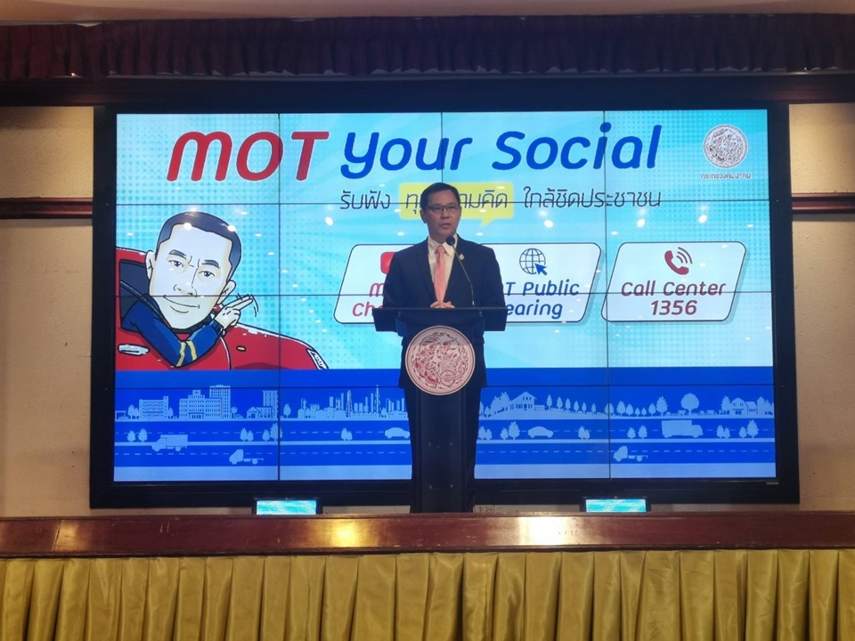 นายชัยวัฒน์ ทองคำคูณ ปลัดกระทรวงคมนาคม กล่าวในการเป็นประธานแถลงข่าวเปิดช่องทางการสื่อสารของกระทรวงคมนาคม “MOT Your Social” รับฟังทุกความคิดใกล้ชิดประชาชน ว่า กระทรวงคมนาคมได้พัฒนา MOT Your Social เพื่อให้ประชาชนได้รับรู้ข้อมูลข่าวสารของกระทรวงฯ อย่างทั่วถึงและรวดเร็วยิ่งขึ้น และเข้ามามีส่วนร่วมในการแสดงความคิดเห็น เสนอแนะ ติดตามการดำเนินงาน ช่วยให้กระทรวงฯ สามารถดูแลประชาชนได้อย่างใกล้ชิดตลอด 24 ชั่วโมง ผ่าน 3 ช่องทางการสื่อสาร ประกอบด้วย1. MOT Channel ผ่านทาง YouTube เพื่อสร้างการรับรู้ข้อมูลข่าวสารของกระทรวงฯ กับประชาชนสามารถติดตามความเคลื่อนไหวข่าวสารสำคัญเข้าถึงทุกการดำเนินงาน ซึ่งเป็นอีกหนึ่งช่องทางในการเผยแพร่ประชาสัมพันธ์การดำเนินงานของกระทรวงฯ ให้สามารถสื่อสารข้อมูลกับประชาชนได้อย่างต่อเนื่องและประสิทธิภาพมากยิ่งขึ้น