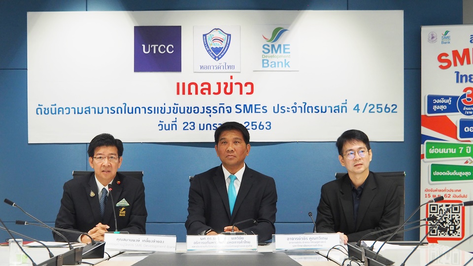 นายธนวรรธน์ พลวิชัย อธิการบดี มหาวิทยาลัยหอการค้าไทย เปิดเผยว่า ดัชนีสถานการณ์ธุรกิจไตรมาส 4/2562 อยู่ที่ 40.8 ปรับตัวลดลง 0.7 จุด เมื่อเทียบกับไตรมาสที่ผ่านมา ส่วนไตรมาส 1/2563 เชื่อว่าจะขยับขึ้นมาอยู่ที่ 41.2 เมื่อจำแนกตามลักษณะการเป็นลูกค้า พบว่า กลุ่มที่ไม่ใช่ลูกค้าของธนาคารพัฒนาวิสาหกิจขนาดกลางและขนาดย่อมแห่งประเทศไทย (SME D Bank) ดัชนีสถานการณ์ธุรกิจปรับจากระดับ 35.0 มาอยู่ที่ระดับ 34.2 ส่วนกลุ่มที่เป็นลูกค้า SME D Bank ดัชนีสถานการณ์ธุรกิจ จากระดับ 47.0 มาอยู่ที่ระดับ 46.5
