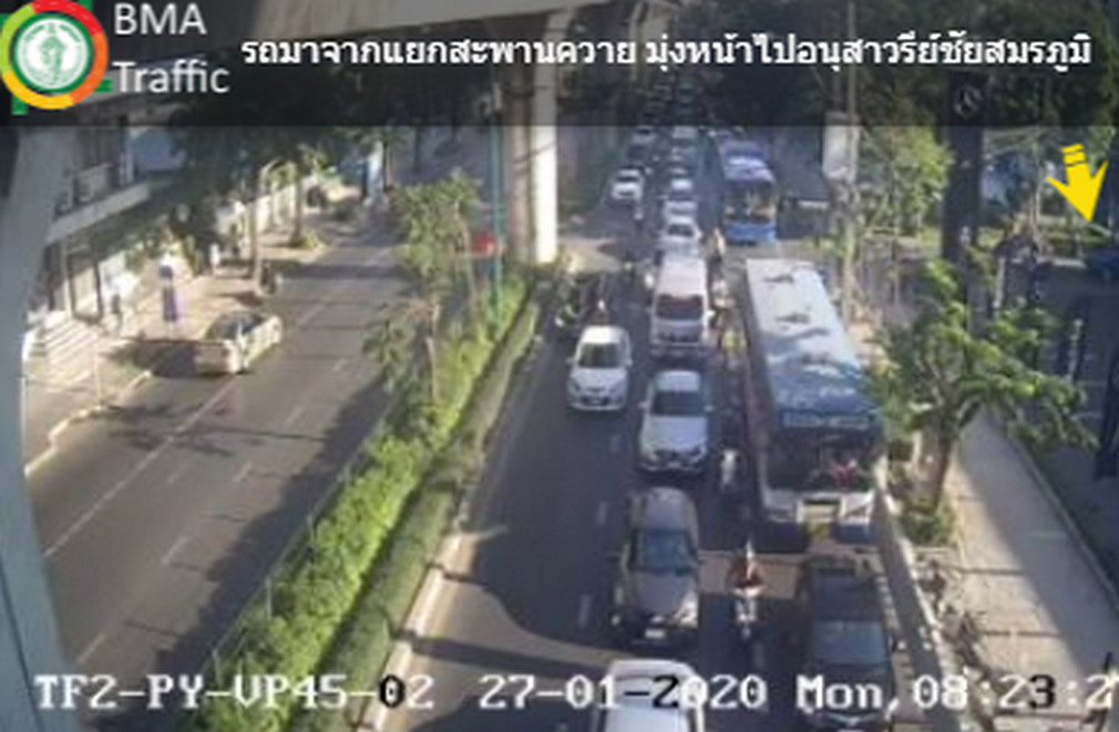 กทม. 27 ม.ค.-สวพ.FM91 รายงานจราจรเช้าวันจันทร์ ถนนพหลโยธิน ขาเข้า ผ่านแยกสะพานควาย มุ่งหน้ามาทางใต้บีทีเอสสนามเป้า รถเคลื่อนตัวได้ช้า ท้ายแถวสะสมอยู่ที่แยกกำแพงเพชร
