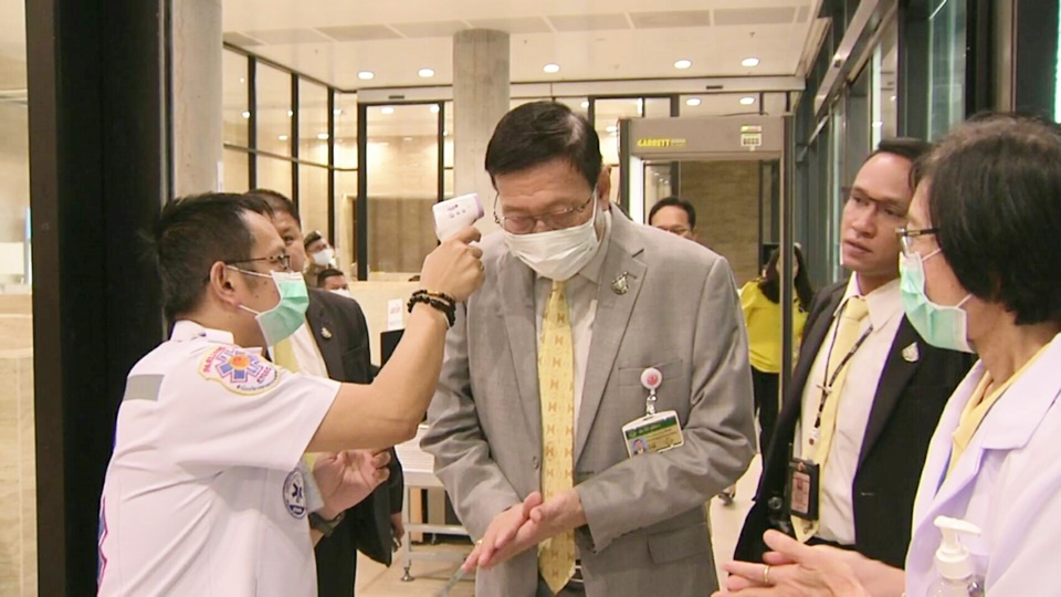 “เจ้าหน้าที่จะช่วยตรวจวัดอุณหภูมิทางร่างกาย รวมทั้งแจกหน้ากากอนามัยเพื่อป้องกันการแพร่กระจายของเชื้อโรค ผมเองก็เป็นไข้หวัด แต่เป็นไข้หวัดธรรมดา ขออนุญาตปิดหน้ากากอนามัยบางครั้ง เพื่อเป็นป้องกันเชื้อโรค” ประธานวุฒิสภา กล่าว.-สำนักข่าวไทย