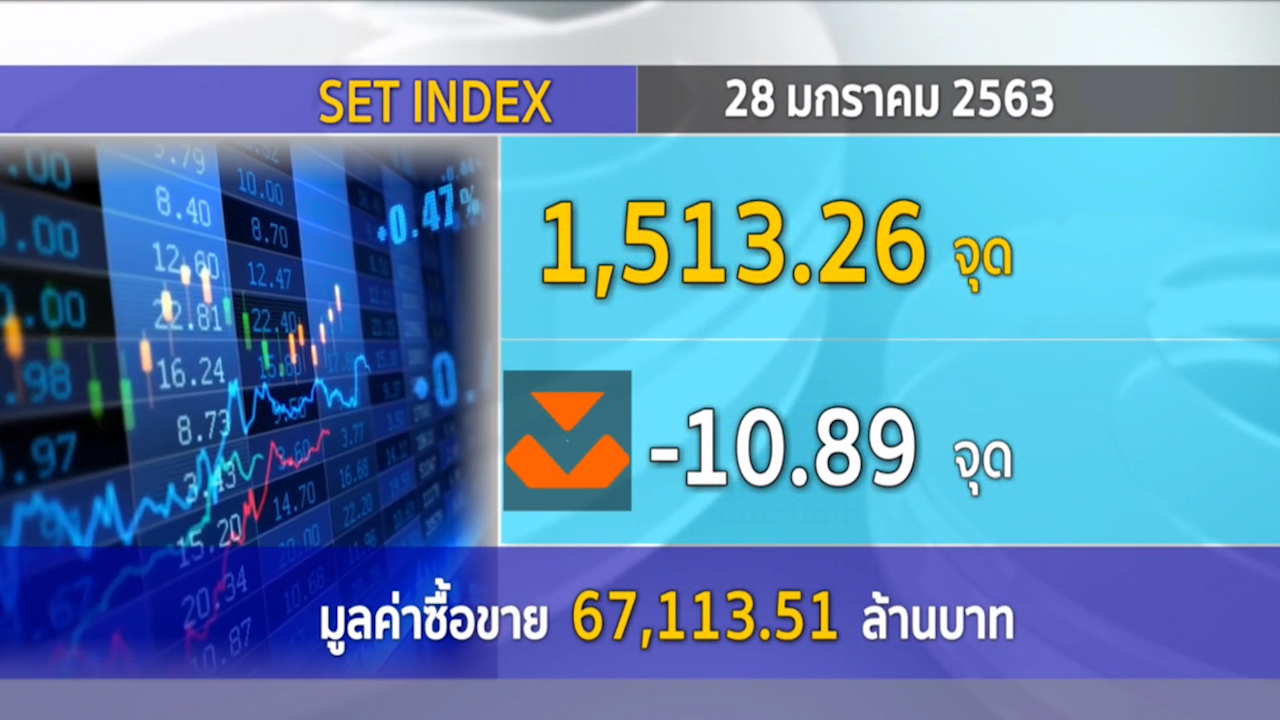 กรุงเทพฯ 28 ม.ค.-ดัชนีตลาดหลักทรัพย์ฯ ปิดวันนี้ (28 ม.ค.) ที่ระดับ 1,513.26 จุด ลดลง 10.89 จุด มูลค่าการซื้อขาย 67,113.51 ล้านบาท โดยดัชนีเคลื่อนไหวทั้งแดนบวก-ลบ กังวลไวรัสโคโรนาระบาด จับตา พ.ร.บ.งบประมาณปี 2563.-สำนักข่าวไทย