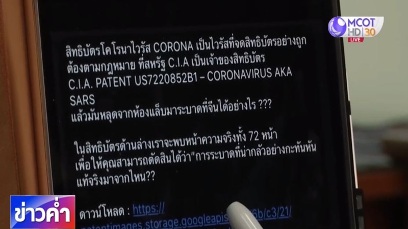 กทม. 29 ม.ค. – ไวรัสโคโรนาสายพันธุ์ใหม่ 2019 บนสังคมออนไลน์แชร์ข้อมูลเกี่ยวกับที่มาของ #ไวรัสโคโรนาสายพันธุ์ใหม่2019-nCoV ว่ามีการจดสิทธิบัตรและอาจหลุดมาจากห้องปฏิบัติการ ข้อเท็จจริงเป็นอย่างไร ติดตามจากศูนย์ชัวร์ก่อนแชร์.-สำนักข่าวไทย