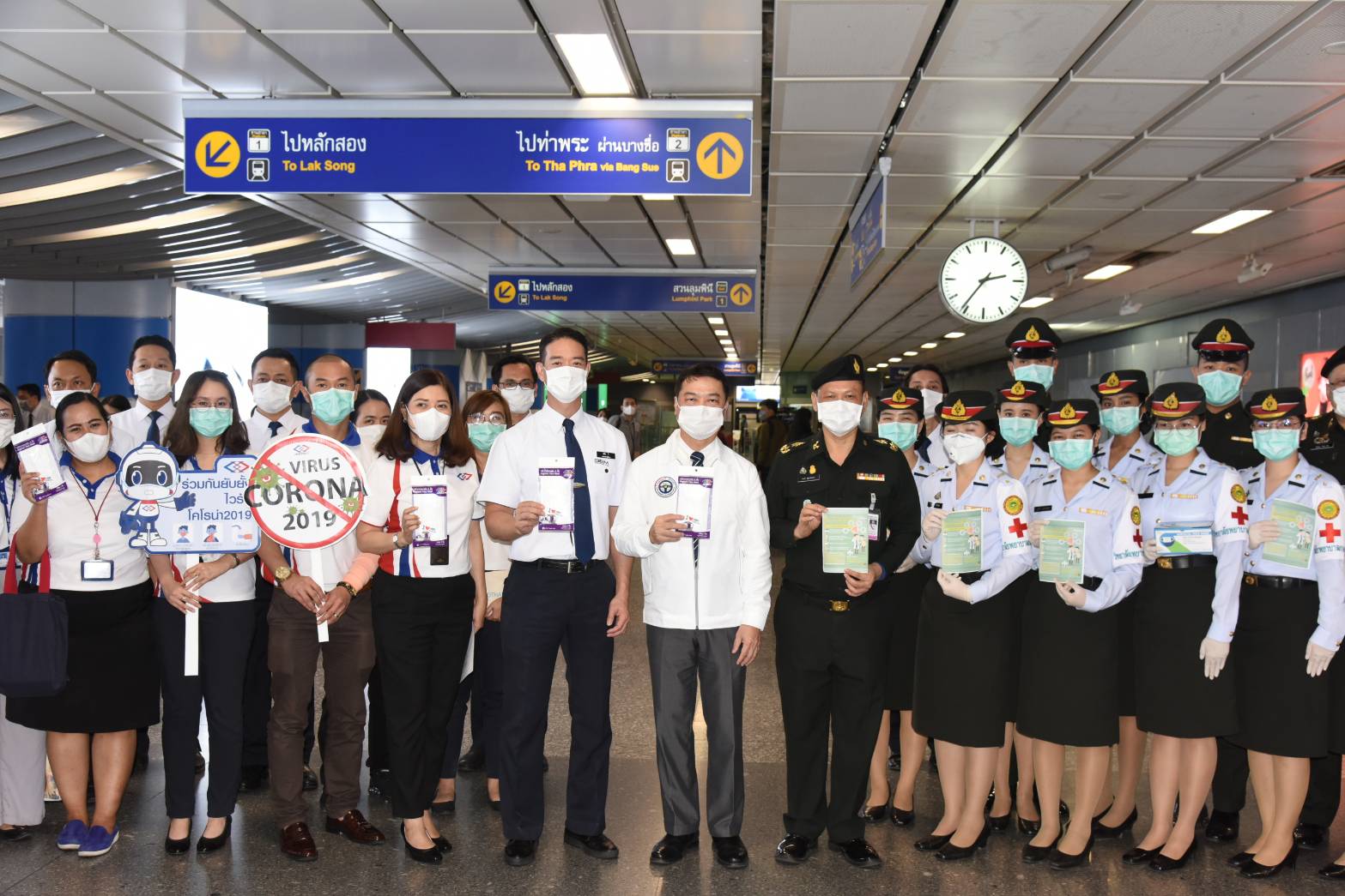 พร้อมเน้นย้ำการทำความสะอาดด้วยน้ำยาฆ่าเชื้อโรคในบริเวณที่ผู้โดยสารต้องสัมผัส เช่น ราวจับภายในขบวนรถ เก้าอี้นั่ง เป็นต้น การจัดให้มีจุดบริการแอลกอฮอล์ล้างมือบริเวณจุดตรวจสัมภาระและห้องออกบัตรโดยสารในสถานีรถไฟฟ้าทุกสถานี นอกจากนี้ ให้มีการดูแลสุขภาพพนักงานที่ให้บริการในสถานีและขบวนรถไฟฟ้า ด้วยการตรวจความพร้อมด้านสุขภาพ ตรวจวัดไข้ก่อนการปฏิบัติงานทุกครั้ง และให้พนักงานสวมหน้ากากอนามัยกรณีที่ต้องปฏิบัติงานในพื้นที่ที่มีประชาชนหนาแน่น ทั้งนี้ รฟม. ยังคงเฝ้าระวังและติดตามสถานการณ์การแพร่กระจายของเชื้อโรค เพื่อเตรียมพร้อมดำเนินการตามมาตรการด้านสุขภาพและอนามัยภายในพื้นที่ระบบรถไฟฟ้า เพื่อสร้างความเชื่อมั่นให้แก่ผู้ใช้บริการรถไฟฟ้า