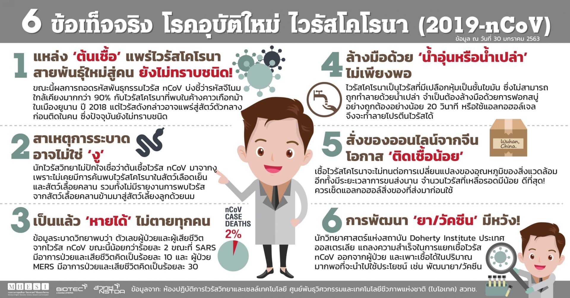 กรุงเทพฯ 30 ม.ค.- รู้หรือไม่ “ไวรัสโคโรนา” มีที่มาจากไหน เรียนรู้จาก 6 ข้อสั้นๆ ที่สวทช.นำมาทำเป็นอินโฟกราฟิกง่ายๆ ให้คุณเข้าใจโรคนี้มากขึ้น