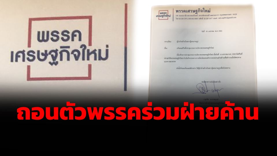 รัฐสภา 31 ม.ค.-พรรคเศรษฐกิจใหม่ ส่งหนังสือถึงผู้นำฝ่ายค้าน ถอนตัวจากพรรคร่วมฝ่ายค้าน ทำงานในนามอิสระตามแนวทางของพรรค