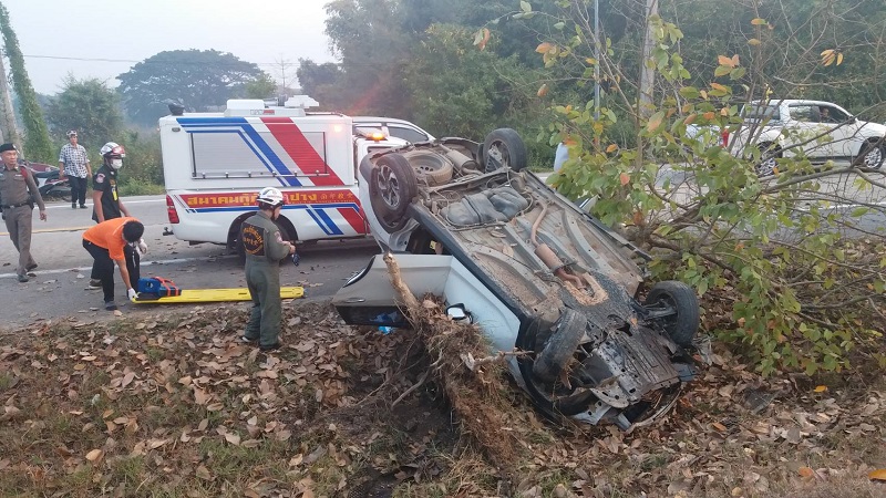 เมื่อเวลา 07.00 น. (31 ม.ค.) ตำรวจ สภ.เขลางค์นคร อ.เมือง จ.ลำปาง และสมาคมกู้ภัยลำปางเร่งช่วยเหลืออุบัติเหตุรถเก๋ง ทะเบียน งฉ 5110 เชียงใหม่ พลิกหงายท้องอยู่ริมถนนซุปเปอร์ไฮเวย์ ลำปาง–เชียงใหม่ บ้านไร่สันติสุข ต.ปงแสนทอง อ.เมือง สภาพหลังคายุบติดอยู่กับพุ่มไม้ ส่วนคนขับติดอยู่ภายในได้รับบาดเจ็บ คือ น.ส.กนกวรรณ ขวัญวงค์ อายุ 27 ปี ถูกนำส่งโรงพยาบาลลำปาง
